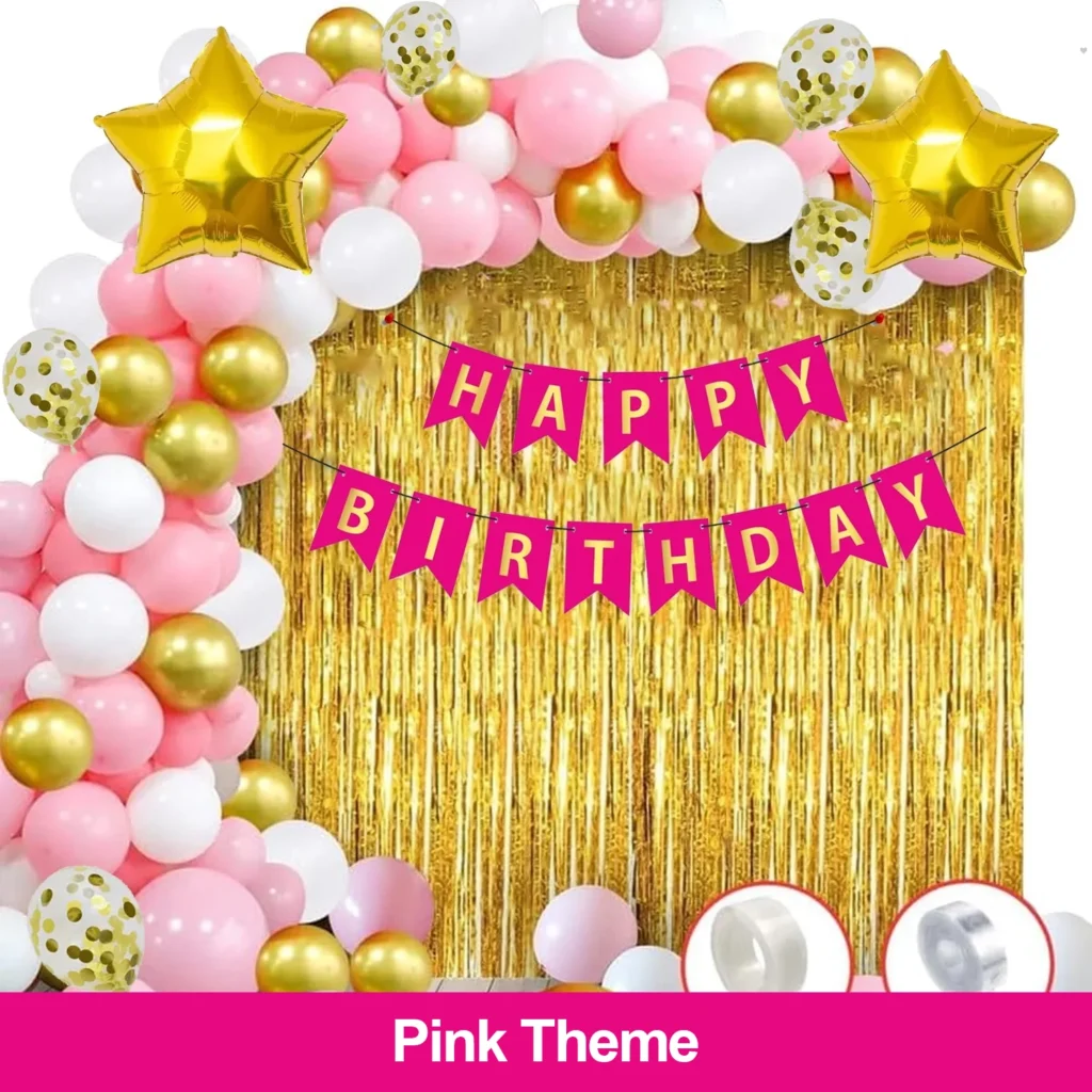 Midlinkerz Birthday Decoration Kit for Girls – 33Pcs Pink, White Golden Metallic Birthday balloons for Girls Decoration, Golden Foil Curtain, Pink Happy Birthday Banner/Birthday Decoration Combo Set Balloon (Pink, White, Gold, Pack of 33)