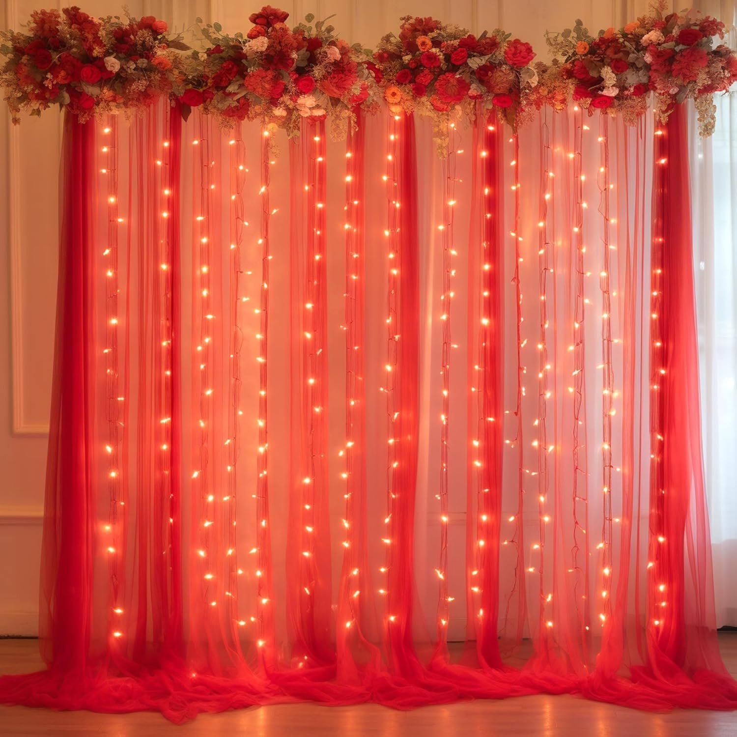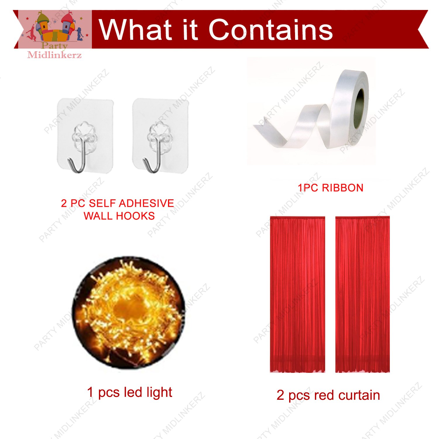 - 2 Pc Premium Red BackDrop Curtain, 1 Premium Yellow LED Light(12 Mtr) 2 Self Adhesive Hook along with 1 Ribbon For Husband Wife| Romantic Dinner Decorations for Girls|Romantic Decoration for Bedroom