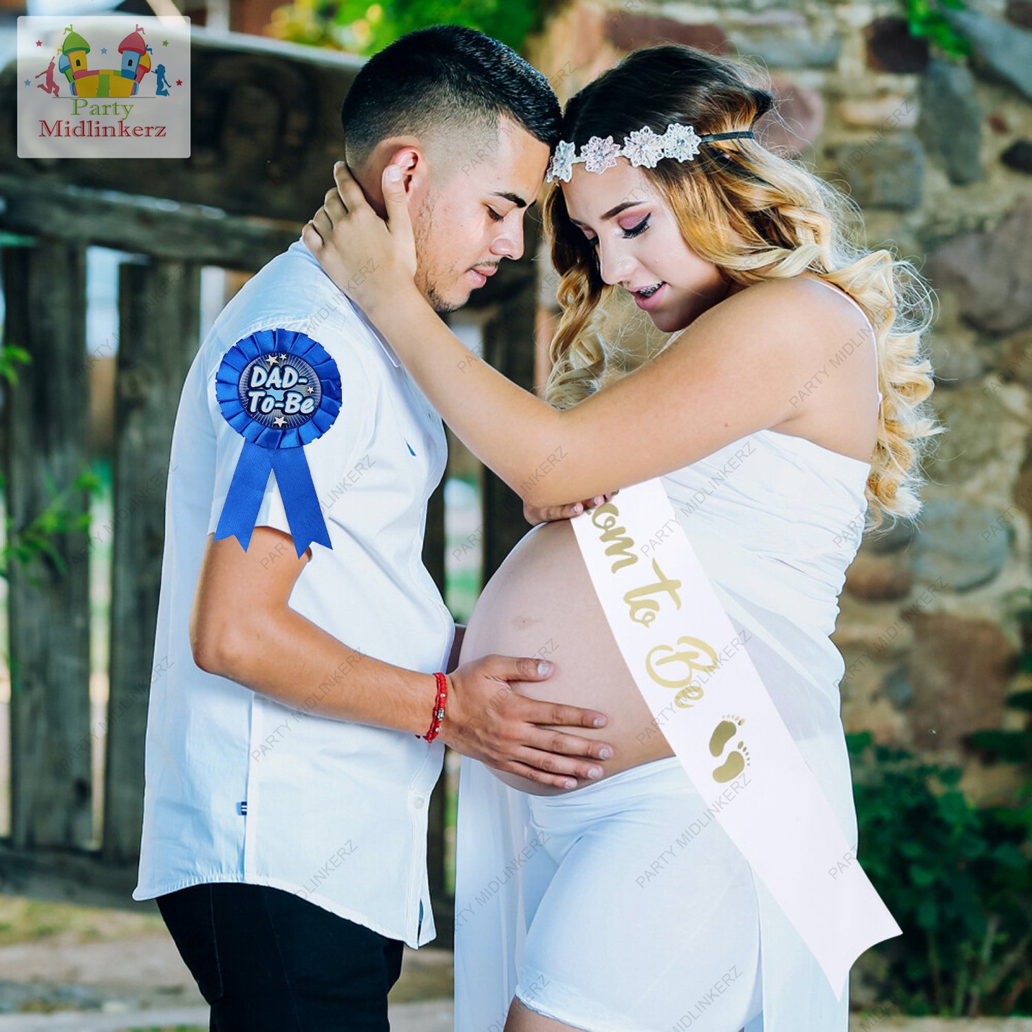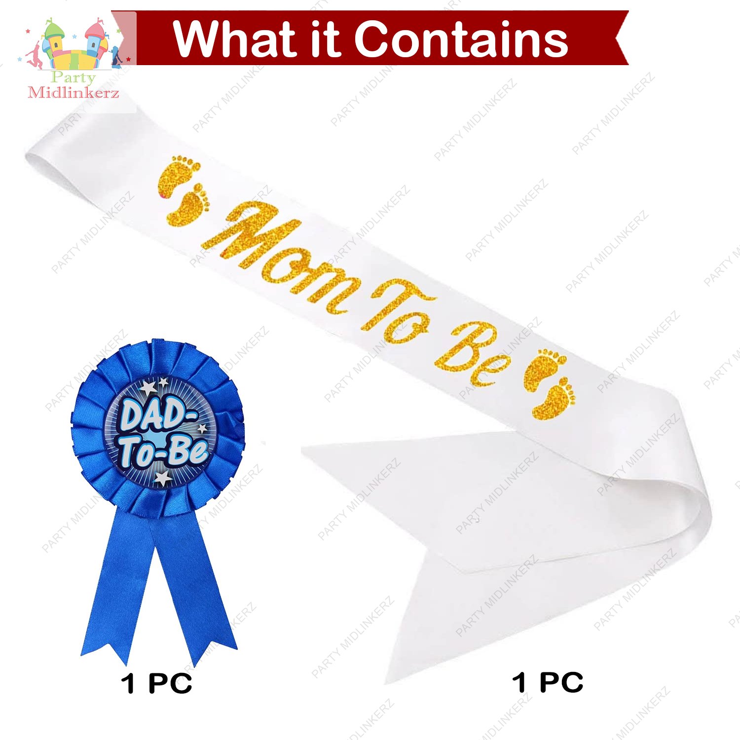 Midlinkerz Baby Shower Mom To Be Decoration Items Set- 2pcs Dad To Be Badge & Mom To Be Sash | Mom To Be Props | Mom To Be Sash For BabyShower | Baby Shower Gifts For Mom To Be | Mom Dad To Be