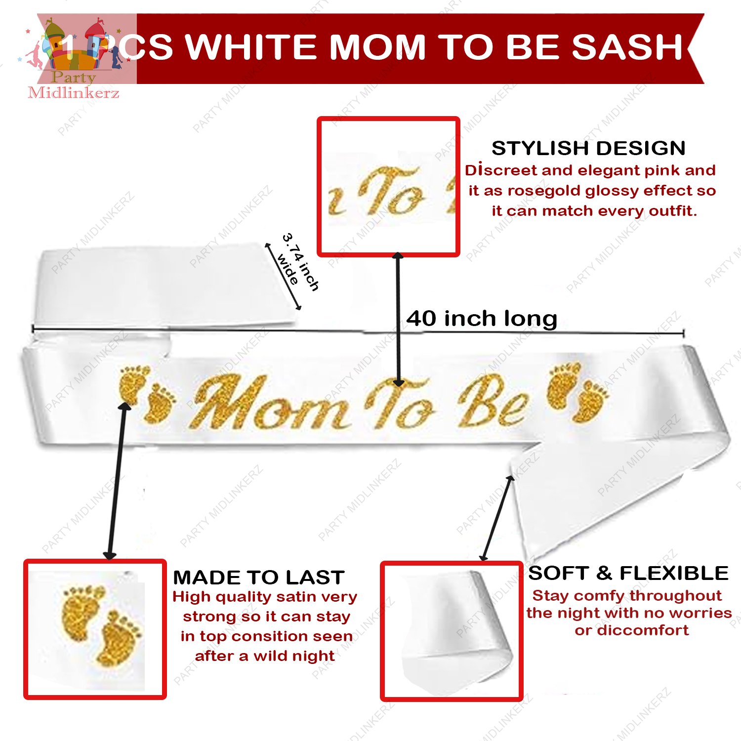 • ENHANCE MATERNITY SHOOTS: The Mom To Be sash included in the mommy to be props set is perfect not only for baby shower games but also for maternity props for photoshoot. It serves as a beautiful baby shower props for decorations accessory that highlights the expectant mother’s glow and joy wearing baby shower sash, party decorations items, baby shower return gifts, baby photoshoot props, seemantham decoration creating timeless and memorable photographs that capture the essence of motherhood baby shower backdrop.