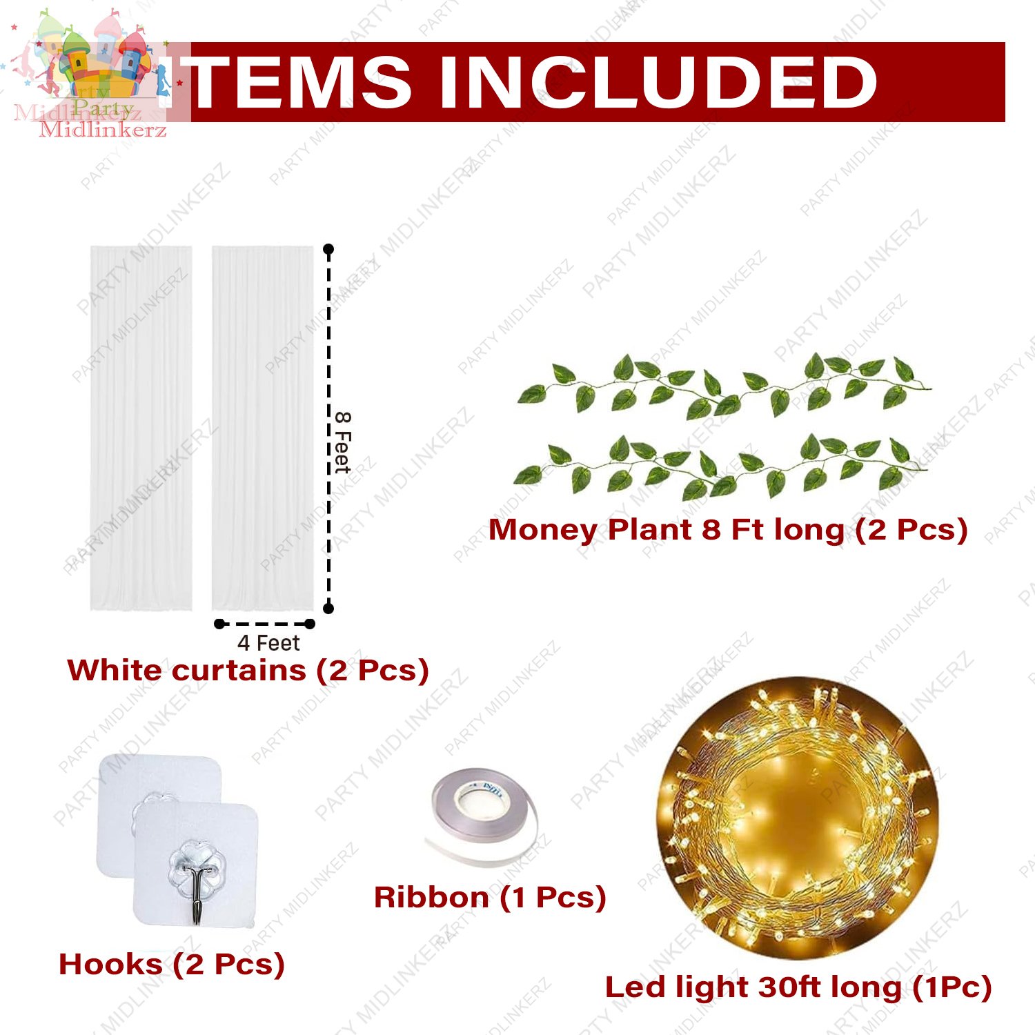 Midlinkerz Backdrop for Pooja Decoration – 8Pcs Traditional Decoration Items | Net White Curtains for Pooja Room Decoration Items | Backdrop Cloth for Decoration |Backdrops (8PCS, White)
