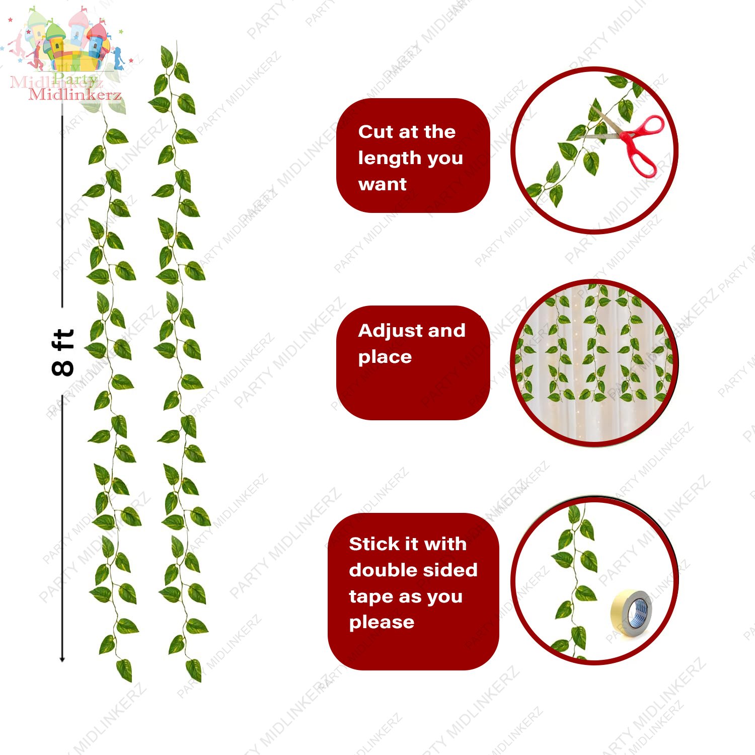 • EASY TO INSTALL AND REUSABLE : In this ganesh chaturthi decoration items set the white net curtains with artificial green leave are designed for convenience and ease of use. Each curtain comes with pre-attached hanging loops, making it simple to install and arrange. This backdrop curtains for decoration is lightweight net fabric is easy to handle and can be reused for multiple events, allowing you to create stunning decoration backdrop cloth without the hassle of purchasing new items every time.