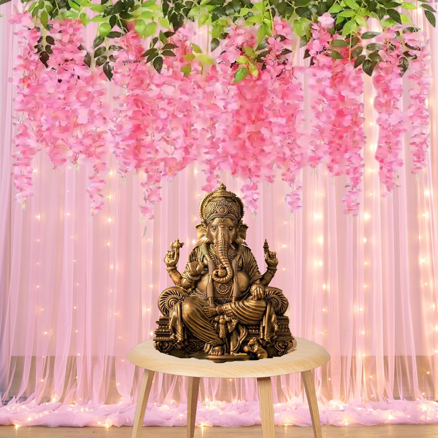 Midlinkerz Ganpati Decoration Setup for Home Decor for Living Room, Ganesh Chaturthi Decoration Setup, Ganpati Decorations Backdrop Cloth for Decorations Pooja Room- 12 Pcs