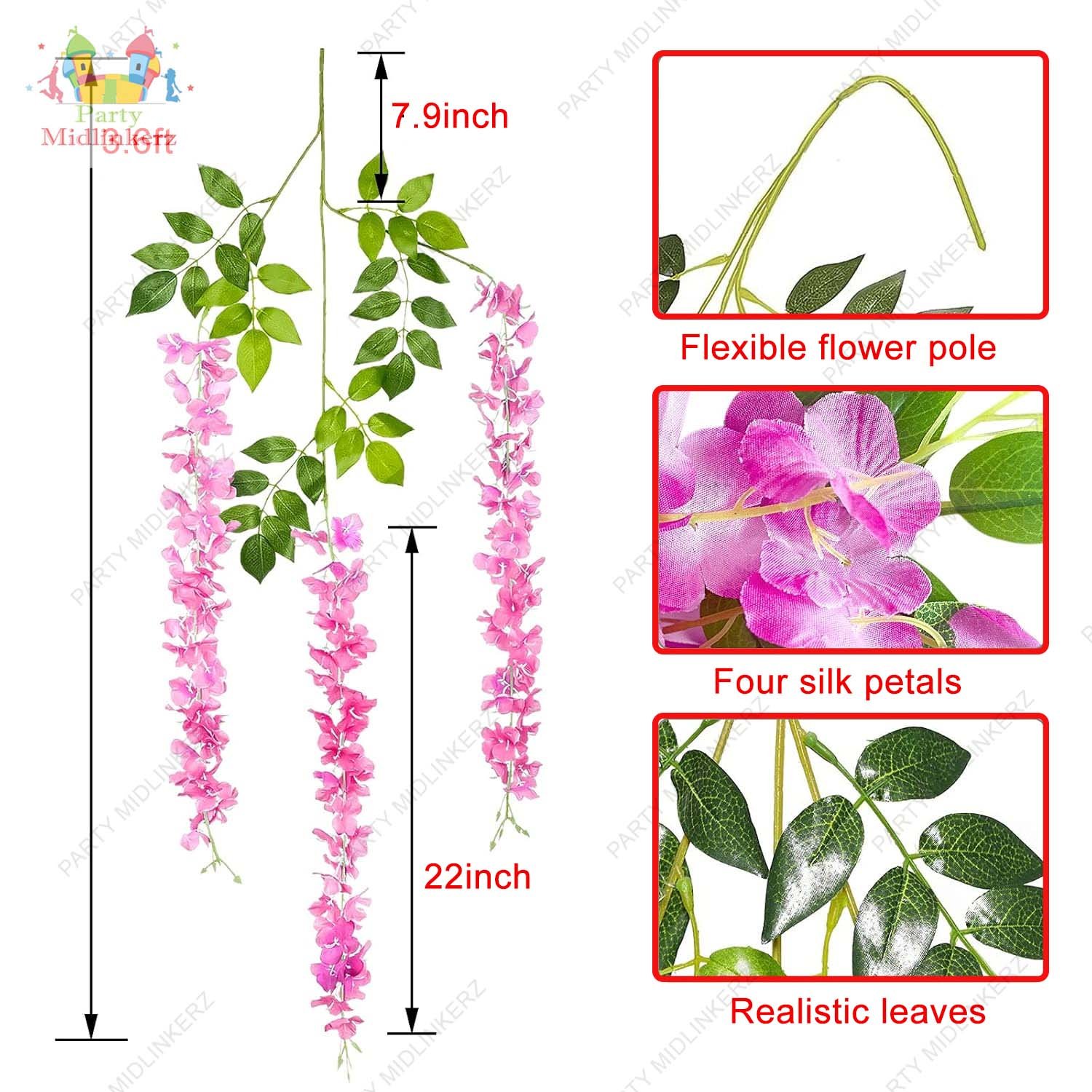 1 led string light, 1 ribbon, 2 hooks, 2 sheer net white curtain, 6 pcs wisteria vines |
