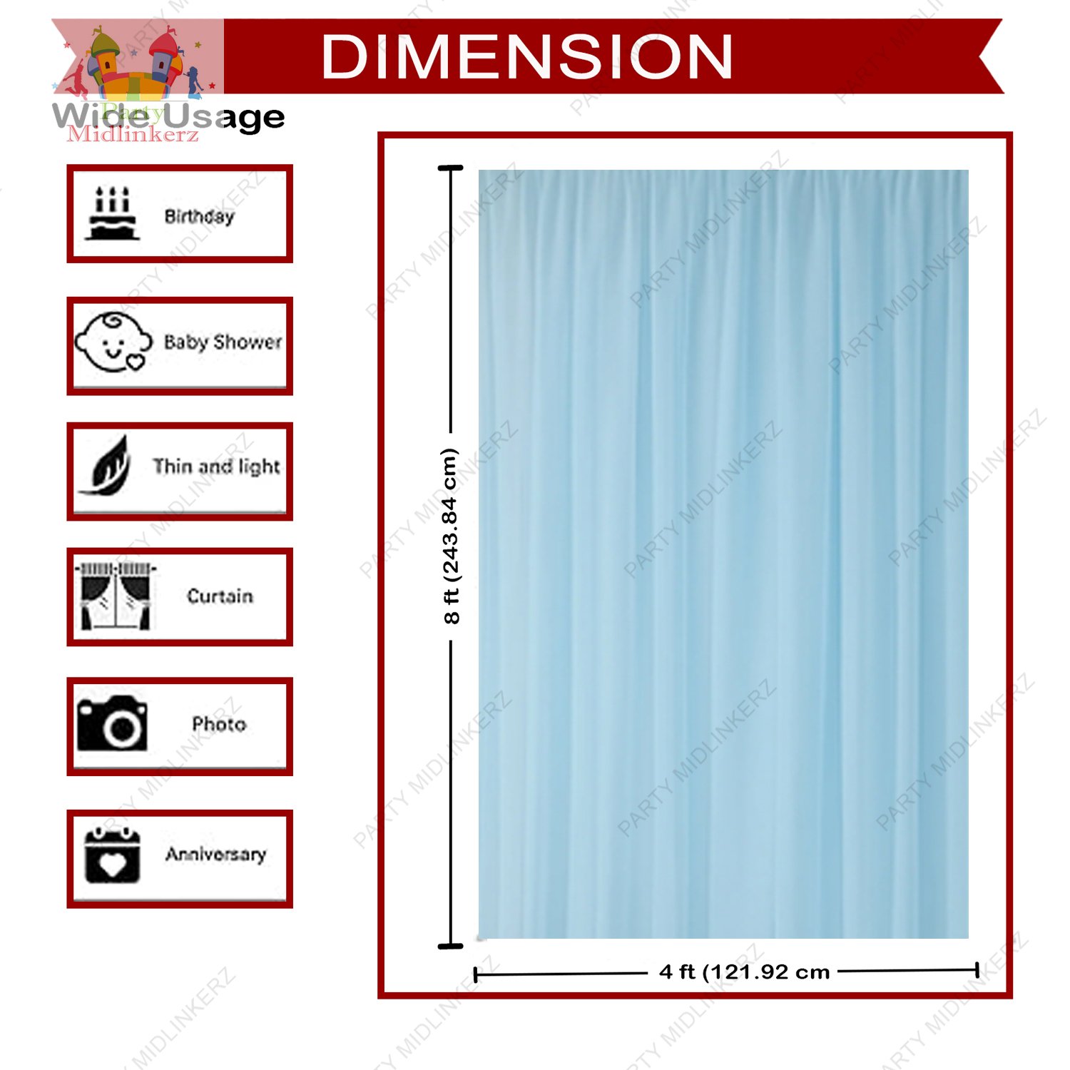 Be the first to review “Midlinkerz Blue Theme Birthday Decorations With Tulle Net Curtain for Backdrop, Photography – Dark, Light Blue, White, Mint Green, Silver Chrome Balloons – 65 Items”