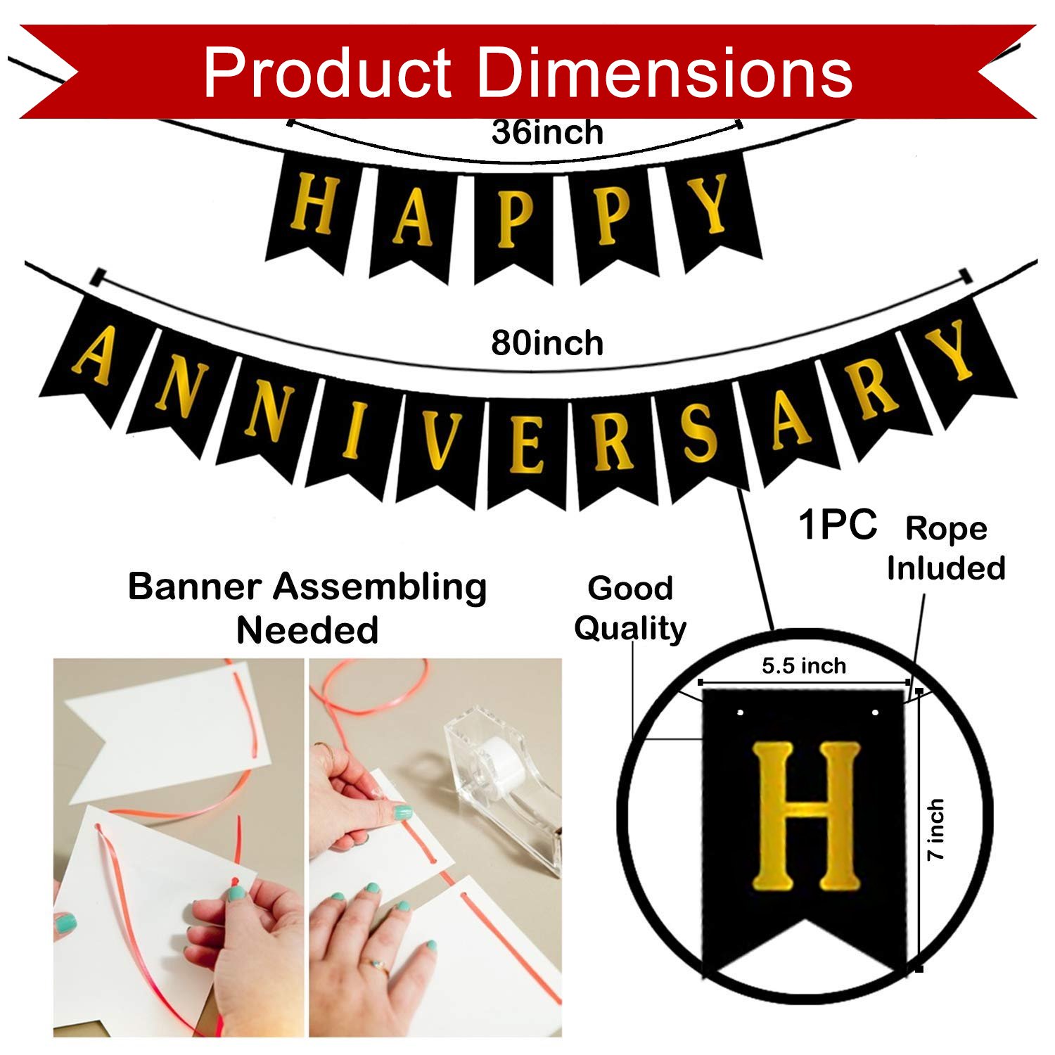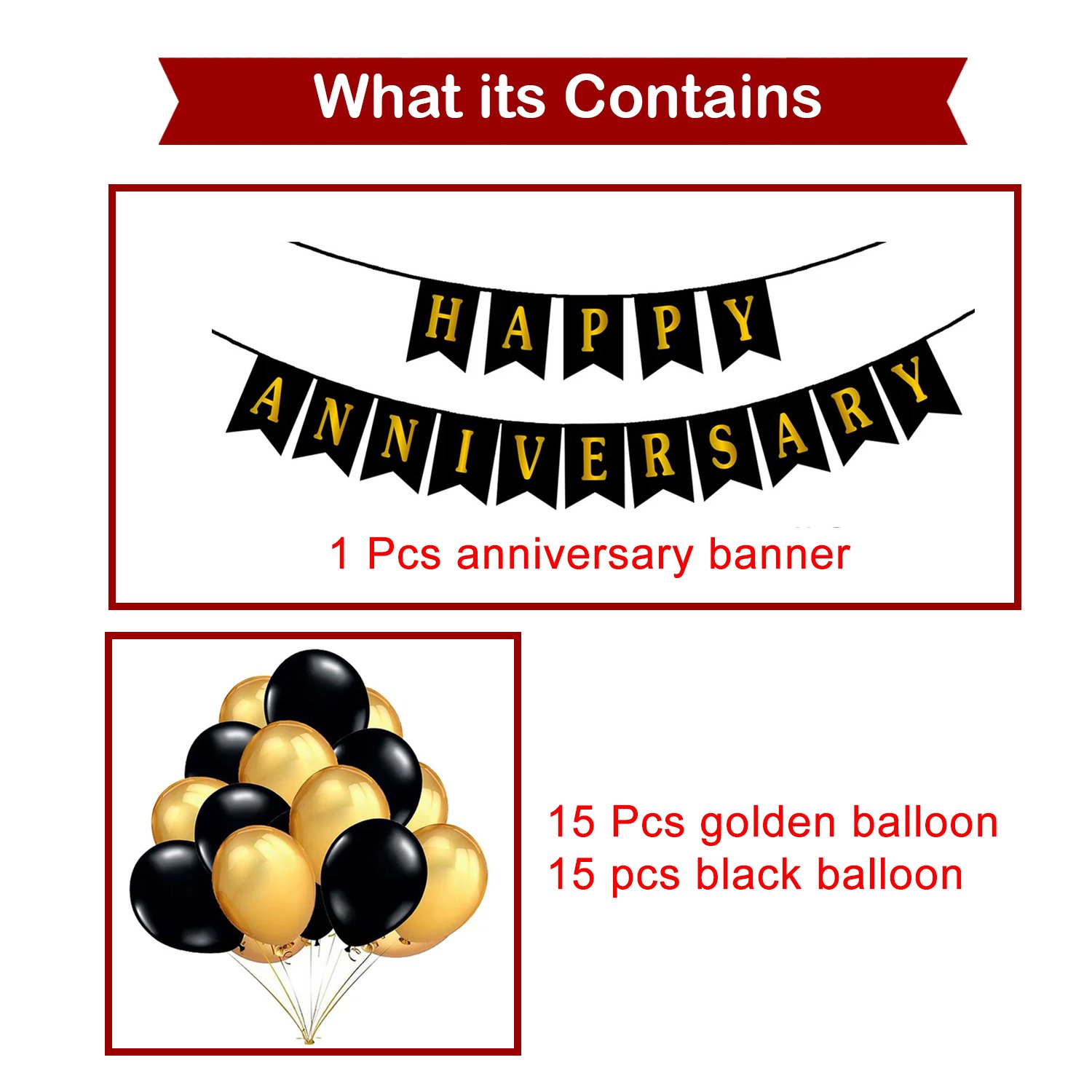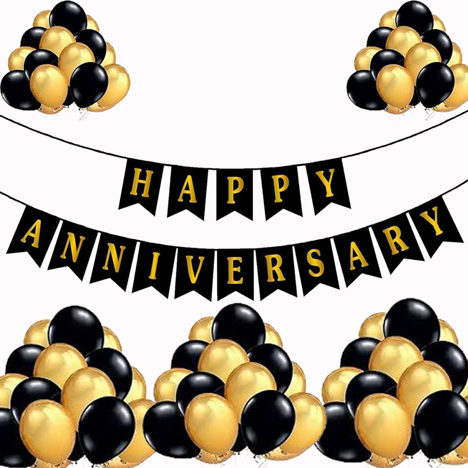 Happy Anniversary Balloons Decoration Kit 31 Pcs, 1 set of Happy Anniversary banner and 30 Pcs Golden and Black Metallic Balloons Set for Husband Kids Boys Balloons Decorations Items Combo with Helium Letters Foil Balloon Banner, Latex Metallic Balloons Balloon (Multicolor, Pack of 31)