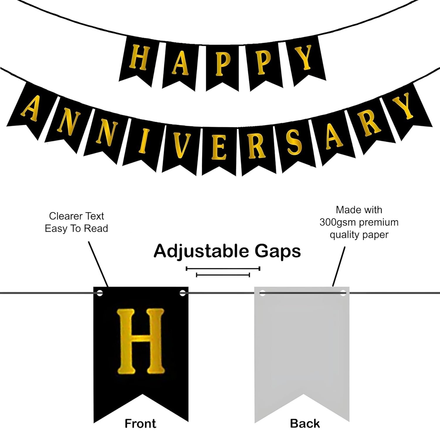 Midlinkerz Happy Anniversary Balloons Decoration Kit 31 Pcs, 1 set of Happy Anniversary banner and 30 Pcs Golden and Black Metallic Balloons Set for Husband Kids Boys Balloons Decorations (Set of 31)