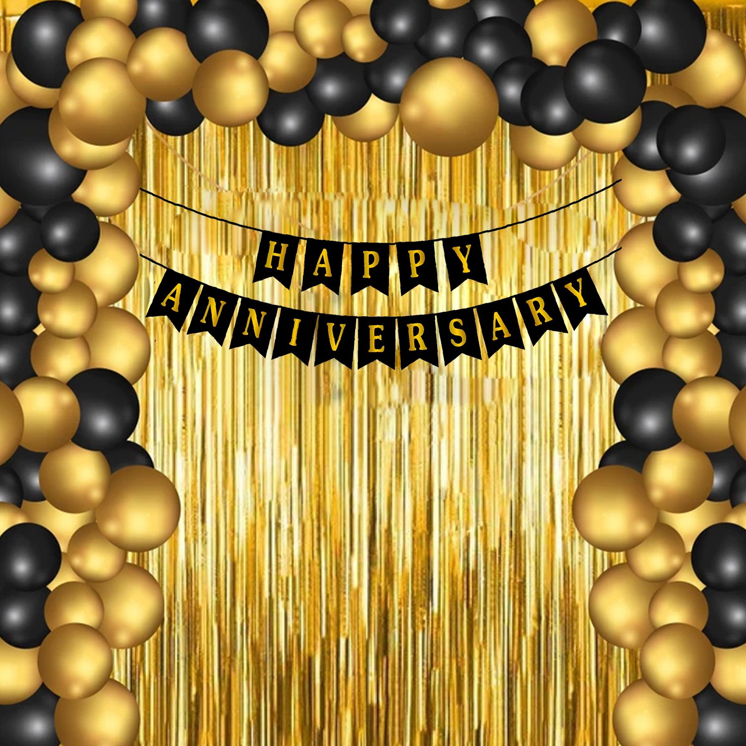 Happy Anniversary Balloons Decoration Kit 33 Pcs, 1 set of Happy Anniversary banner and 30 Pcs Golden and Black Metallic Balloons Set with 2 Pcs Golden foil curtain for Husband Kids Boys Balloons Decorations Items Combo with Helium Letters Foil Balloon Banner, Latex Metallic Balloons Balloon (Multicolor, Pack of 36)