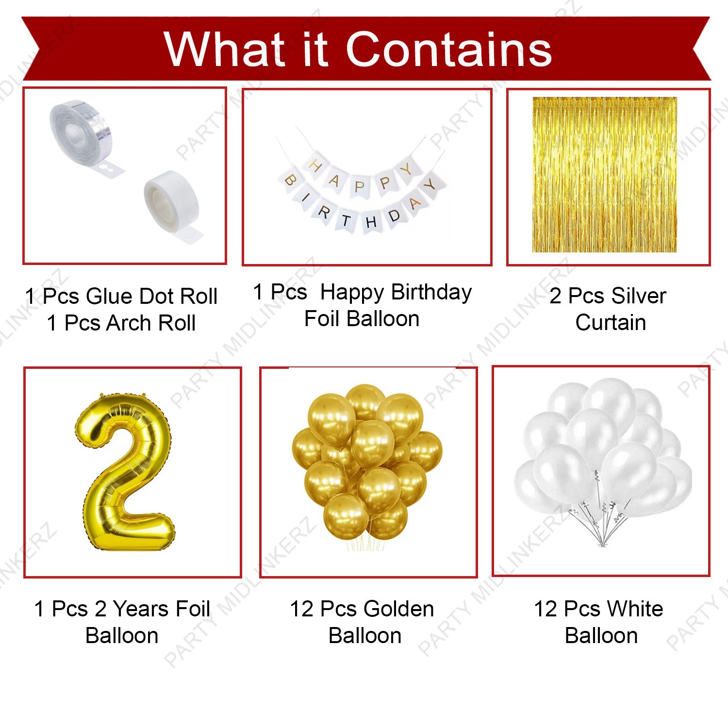 Solid Happy Birthday Balloons Decoration Kit 29 Pcs, 1 set of White “Happy Birthday” 13pcs alphabet Banner and 24pcs HD Metallic (White & Golden) and 3Pcs Golden Curtains with 1Pc Number Balloon for Kids Girl Birthday Balloons Decorations Items Combo with Happy Birthday Banner boy 1st Birthday Latex Metallic Balloons Balloon (Multicolor, Pack of 29)