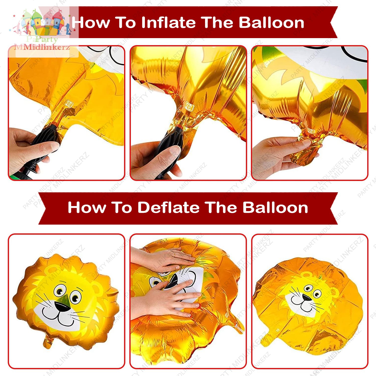 - REUSABLE & STURDY JUNGLE BIRTHDAY DECORATIONS : This pretty jungle ballons for birthday decorations kit for your celebrations are made sturdy enough to stand the long-hour display. The Foil Balloons have self-sealing valve for easy inflation and deflation. Inflate slowly with air or helium and just fill 90% of the balloons space that could allow the big balloons to expand completely. Our easy on the pocket helium supported balloons set once deflated can also be used several times after the party