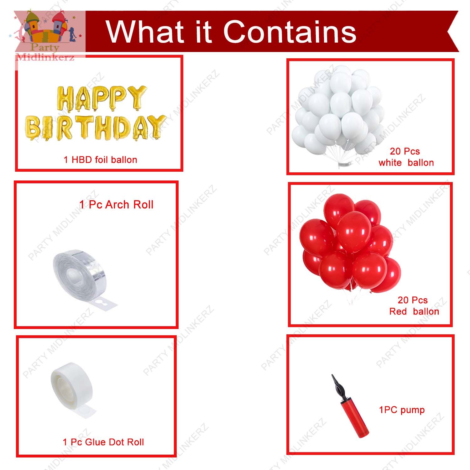 Celebrate birthdays in style with the MIDLINKERZ Red Happy Birthday Balloon Decoration Kit, a complete 44-piece party set designed to make any birthday memorable. This vibrant red-themed balloon kit includes high-quality latex and foil balloons, a “Happy Birthday” banner, and other festive accessories to create a stunning party setup.