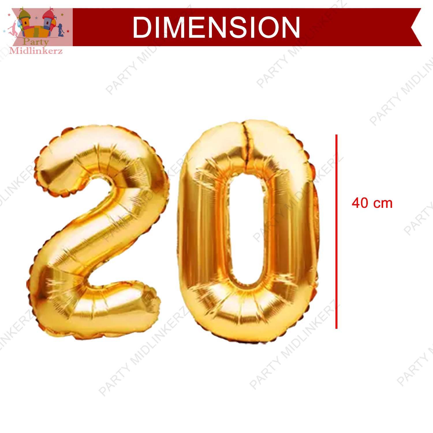 Midlinkerz Solid Golden ’20’ number Numerical Foil Balloon with Ribbon for Celebration (Gold, Pack of 3) (Set of 3)