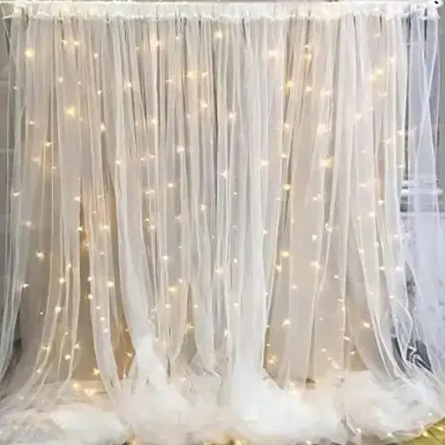 - VERSATILE USAGE: This curtain is perfect for all types of decorations. The transparent net fabric, paired with warm white fairy lights, adds an elegant and charming touch to any setting. Perfect to be used as 25th anniversary decoration, curtain decoration hanging, birthday decoration curtains, marry me decoration, wedding decor, party propz birthday decoration items, 25th anniversary decoration items, net curtains for decoration, proposal decoration, backdrop cloth for birthday decoration, back drop cloths for decoration, birthday backdrop for decoration, happy anniversary decoration kit, back drop curtain for decoration, birthday decor, mehandi decoration items for marriage.