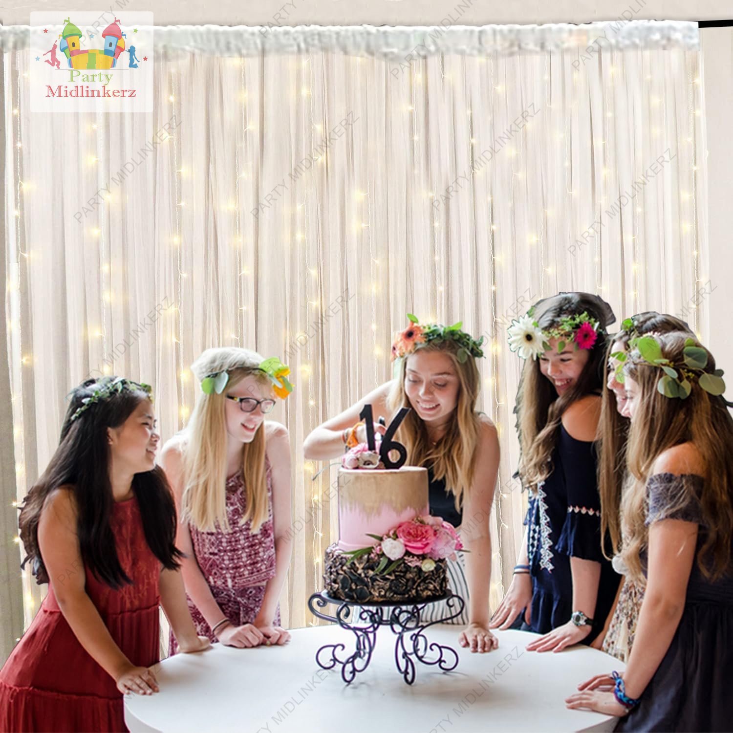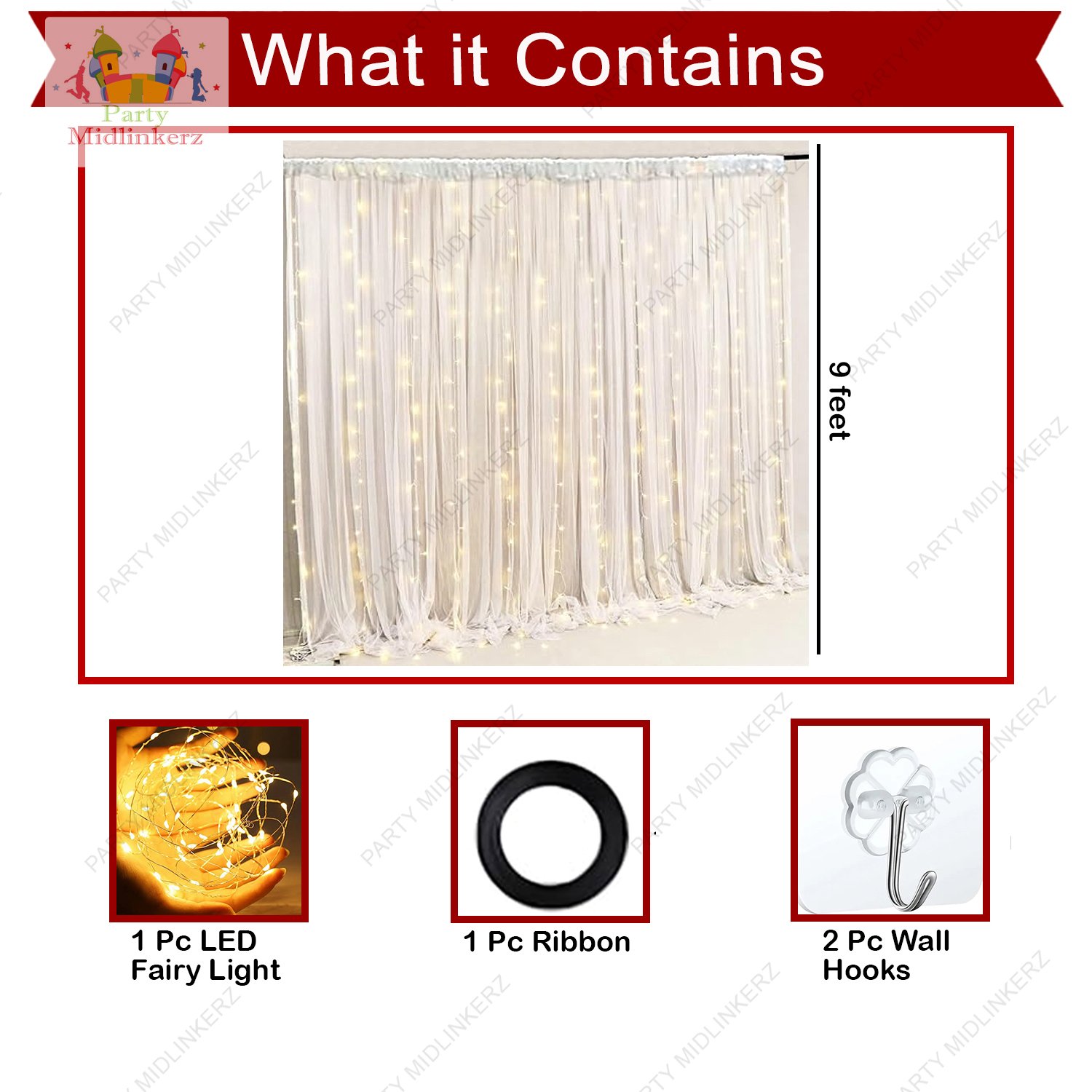 - This Cabana Theme Decoration Combo includes: 2 Pc Premium White Back Drop Curtain, 1 Premium Yellow LED Light(12 Mtr) 2 Self Adhesive Hook along with 1 Ribbon For Husband Wife| Romantic Dinner Decorations for Girls. Enogh for a Birthday Decoration.
