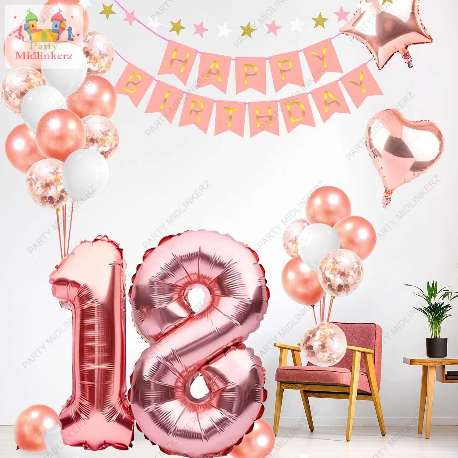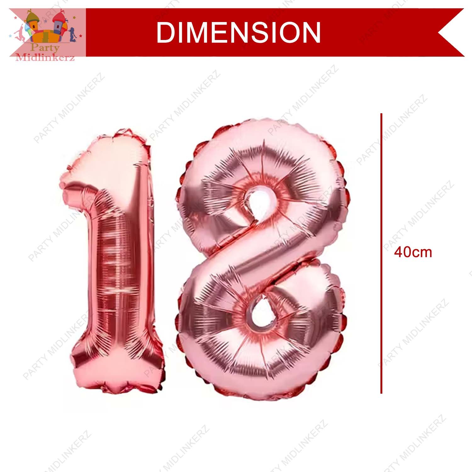 Birthday Numbers Solid RoseGold ’18’ number Numerical Foil Balloon with Ribbon for Celebration (Rose Gold, Pack of 3)