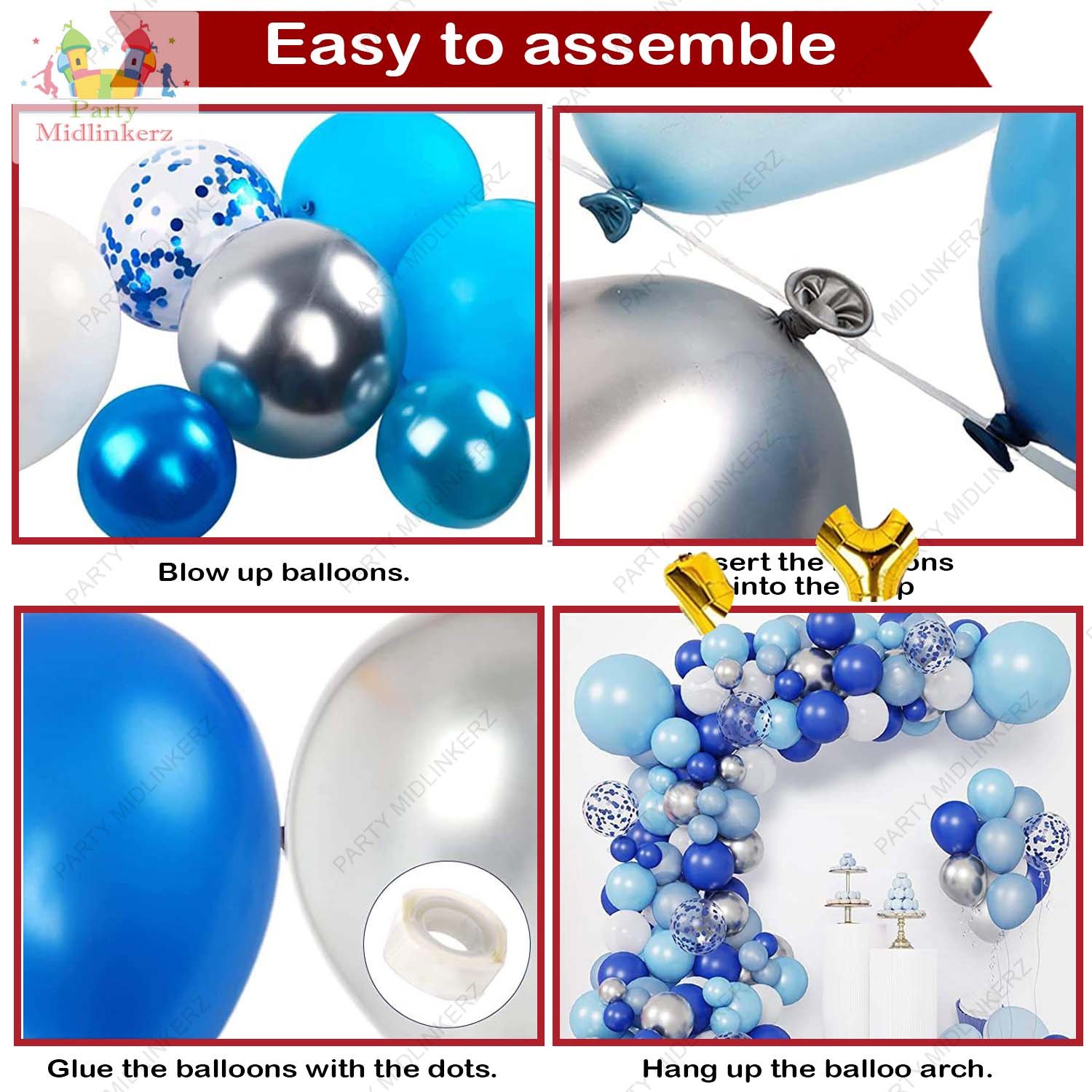 Color Combination – Total are 32 pcs – 10 Blue & Silver Balloon, 2 Blue Star Foil Balloon, 2 Silver Star Foil Balloon, 2 Pcs Blue Foil Curtain And 1 Pcs Happy Birthday Banner