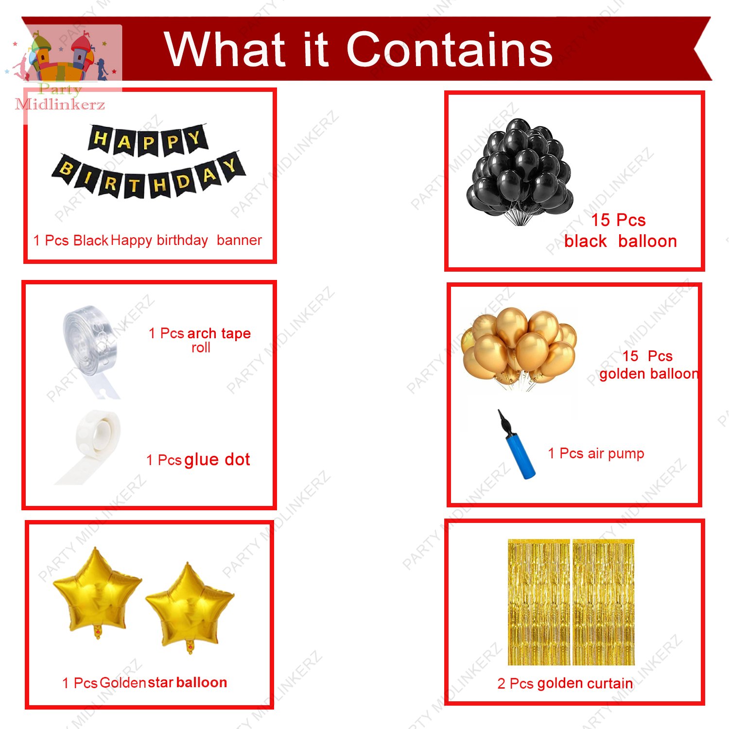 - EASY TO USE : These happy birthday decoration with golden and black balloons for decoration, happy birthday banner (cardstock) are easy to use and can combine with other birthday decoration items. These birthday kit for decoration decoration items for birthday for kids look pretty once set up. Minimal yet exquisite birthday decorations items set looks eye catchy to guests and children birthday decoration items for boy.