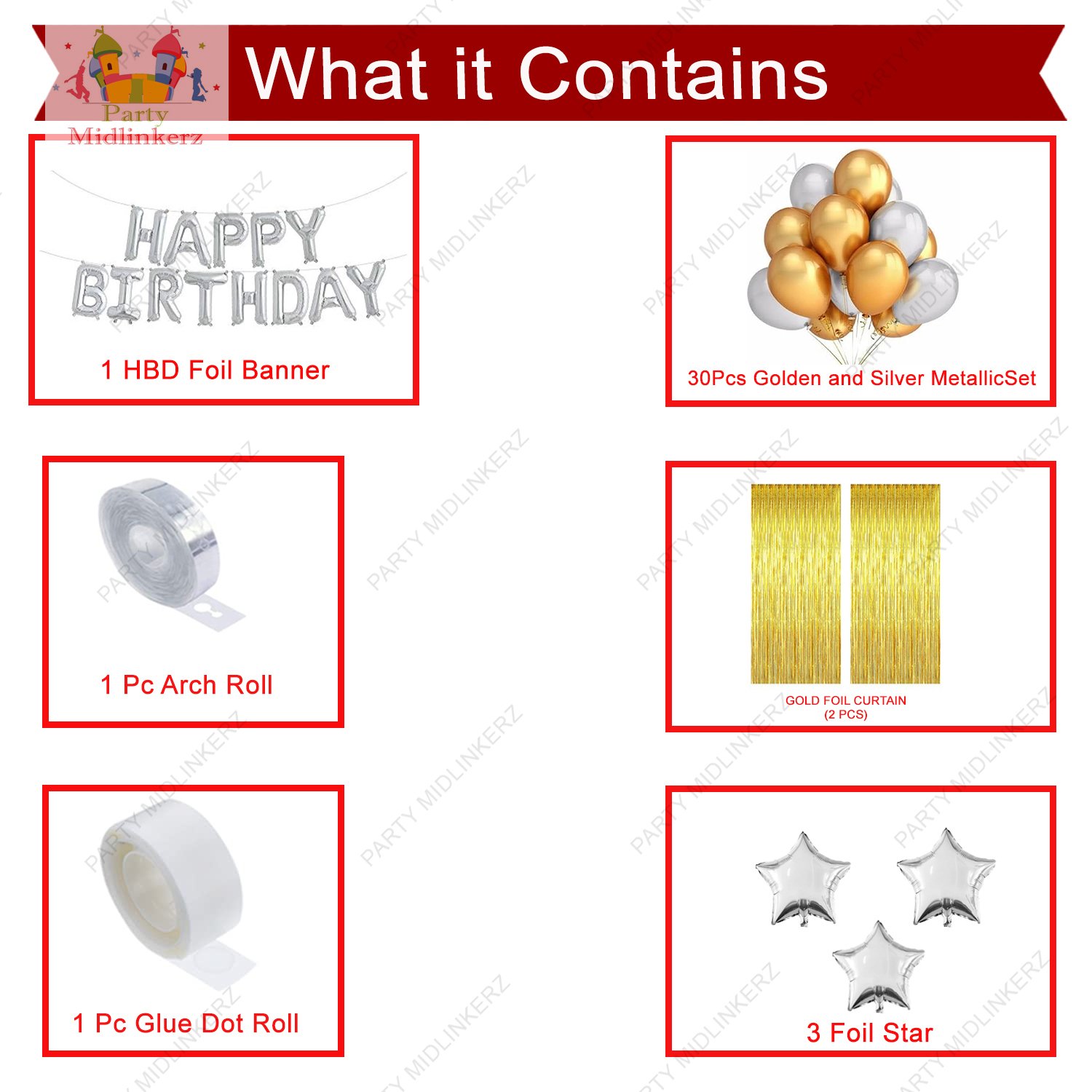 PARTY MIDLINKERZ Happy Birthday Decoration kit Combo – 38 Pcs for Birthday Decor (Set of 38)