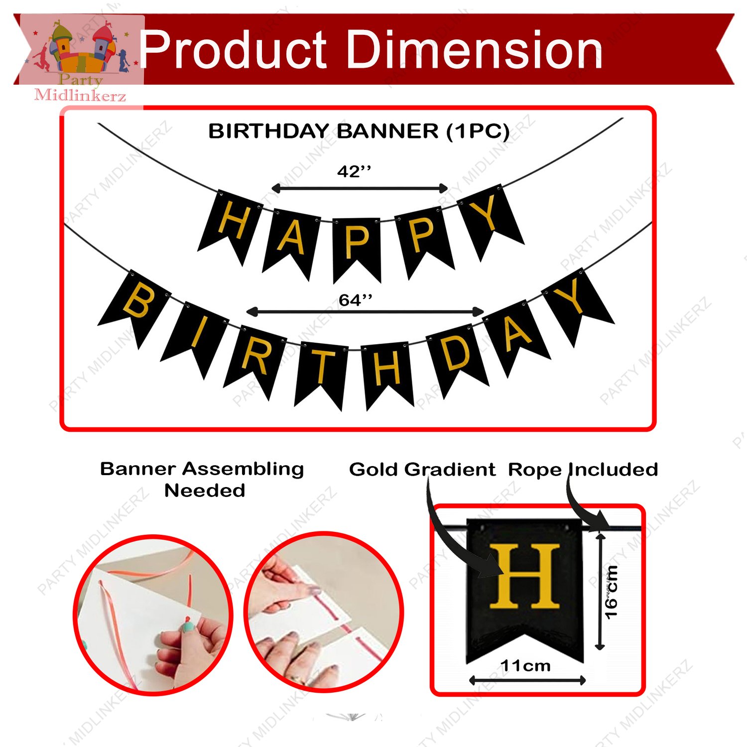 - [Quality Material] – The birthday balloons for birthday decoration are made with natural latex and our normal balloons are rigorously tested and then put in the birthday decoration kit for girls/boys. All the birthday decoration items in the birthday decoration kit are safe to be used.The beautiful black happy birthday banner is easy to hang.The arch tape is used as a balloon garland strip giving your birthday decoration more attractiveness.