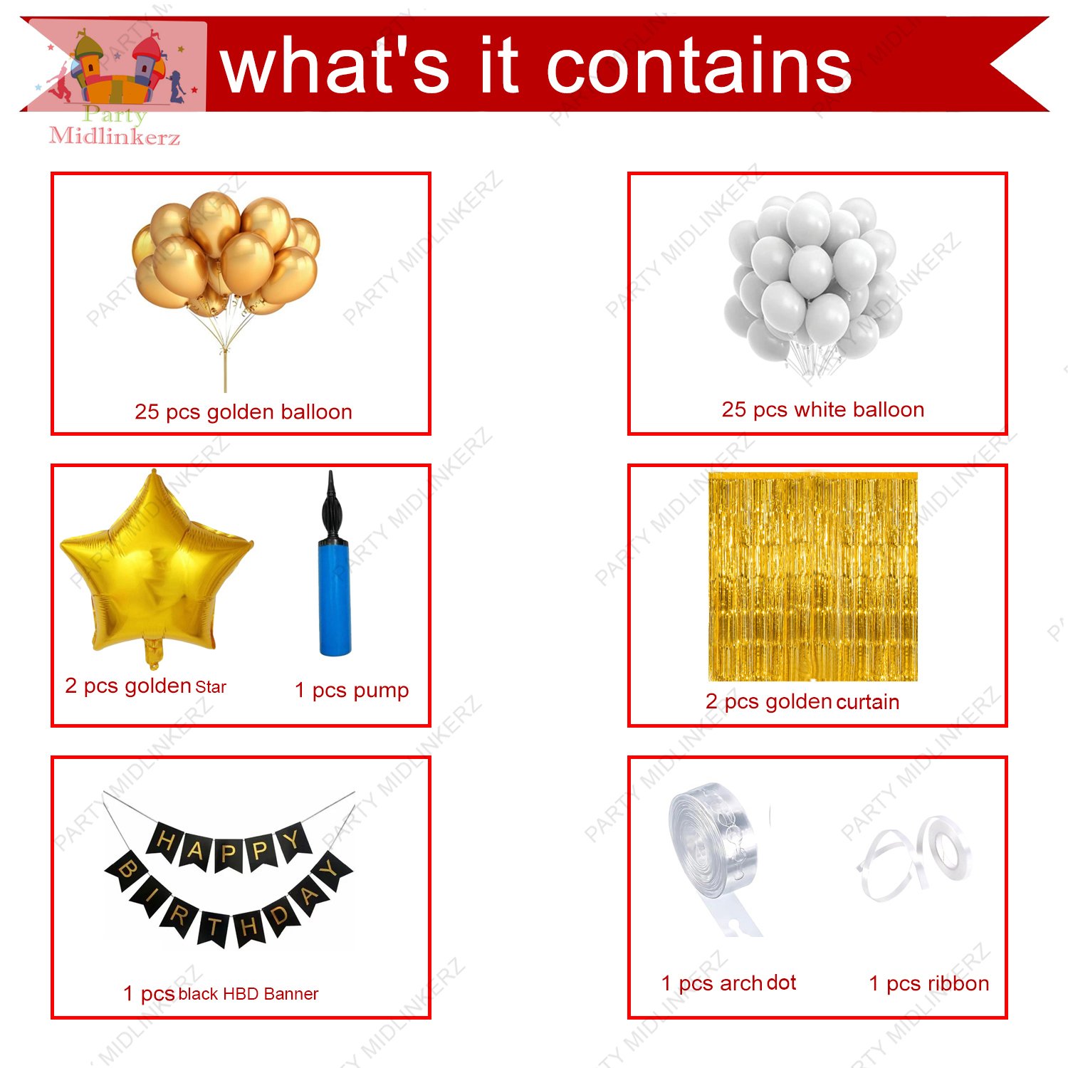 - The kit includes everything you need to decorate effortlessly. Inflate the balloons using air or helium, arrange them creatively, and hang the fringe curtains and backdrop with ease. No professional assistance is required to achieve a polished look.