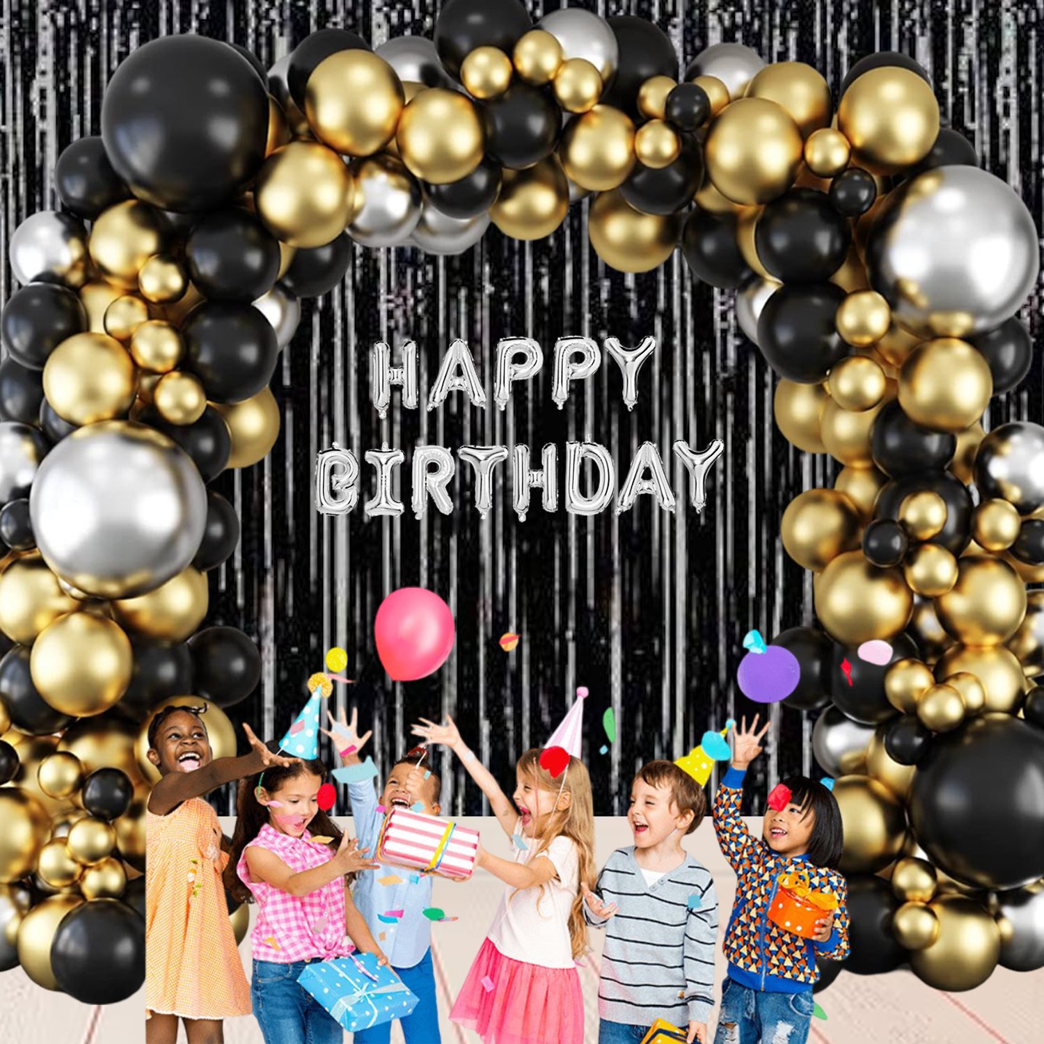 - Solid Happy Birthday Balloons Decoration Kit 33 Pcs, 1 set of Silver 13Pcs “Happy Birthday” alphabet foil balloons an 30pcs HD Metallic balloons(10 Gold, 10 Black & 15 Silver) and 2pcs Black Foil Balloons with 1 Ribbon for Husband Kids Boys Balloons Decorations Items Combo with Helium Letters Foil Balloon Banner, Latex Metallic Balloons Balloon (Multicolor, Pack of 33)